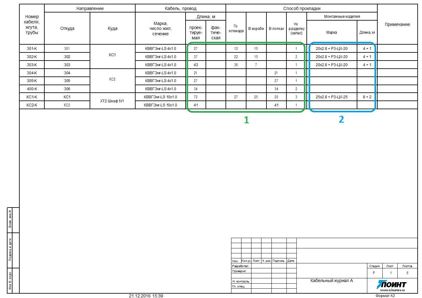 Информация в зоне 1 получена с Плана трасс с помощью приложения CableLayout.