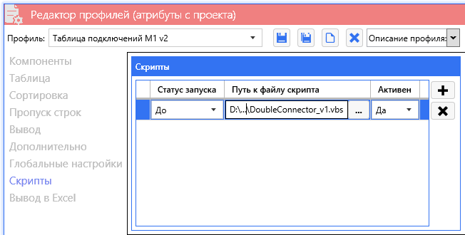 Работает скрипт просто: если к изделию типа Соединитель подключено два провода\жилы, то ему добавляется атрибут «Двойной наконечник» со значением «Да» (TRUE).