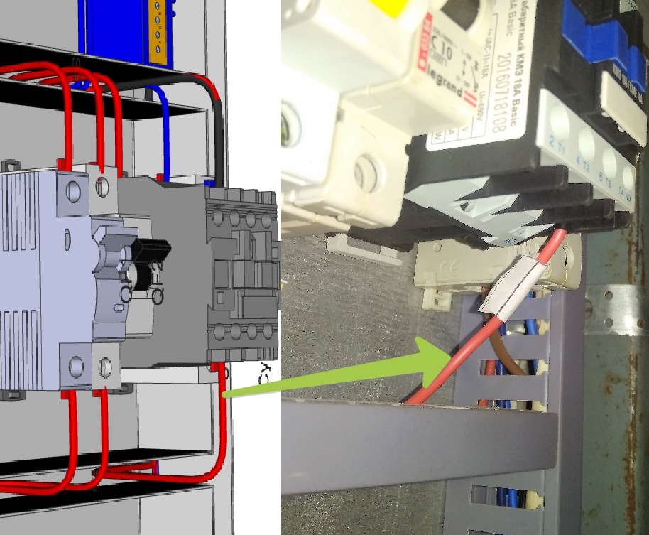 На монтаже провода короче расчетной длины на 3см. Можно было конечно на переобжим оставить и затолкать в короба, но мне это было никчему. Оно в принципе предсказуемо, т.к. в модели компоновке Е3, провода\жилы заходят в короб по некой Г-образной кривой сверху короба, а на практике фактически по прямой в бок короба: